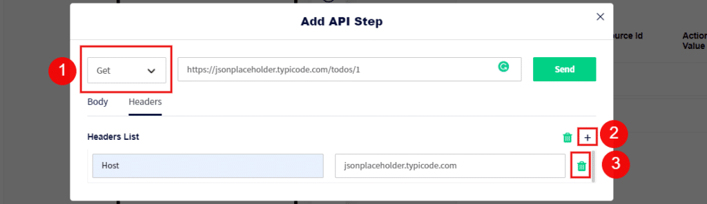 Once you’re done selecting your desired method, you can proceed to add a URL in the text field next to it. Before we hit that “Send” button, however, we must add the necessary headers to ensure that our call works seamlessly.